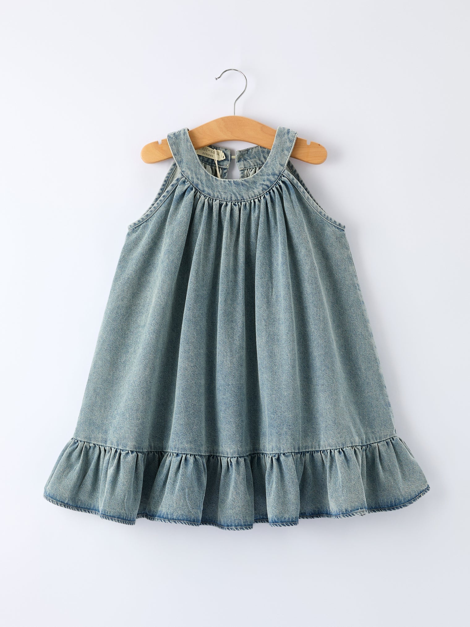 Elevate her everyday style with this charming denim A-line dress, designed for the modern girl who loves classic appeal with a contemporary twist. The delicate ruffle trim adds a playful feminine touch that catches the eye, while the timeless denim fabric ensures durability through all her adventures. The flattering A-line silhouette provides comfortable movement and a polished look perfect for school, playdates, or family outings. Versatile enough to pair with sneakers or dress shoes, this piece becomes an instant wardrobe staple that transitions seamlessly from season to season.